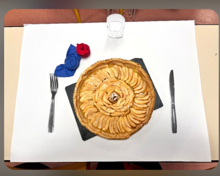 …les élèves d’AEPE1 ont travaillé en décembre sur le trompe l’œil en design culinaire avec Mme Van der Heyden. D’abord des recherches sur les pâtissiers renommés qui utilisent ce procédé, puis des travaux de croquis et de recherche de recette… Pour finir en cuisine avec M. Sery en janvier, pour confectionner ces « bouquets de roses » parfumés à la pomme…De belles réalisation photographiées sur tables avec pliages de serviettes, verres en trompe l’œil…Merci à tous pour ce beau projet et cette bonne dégustation fleurie !